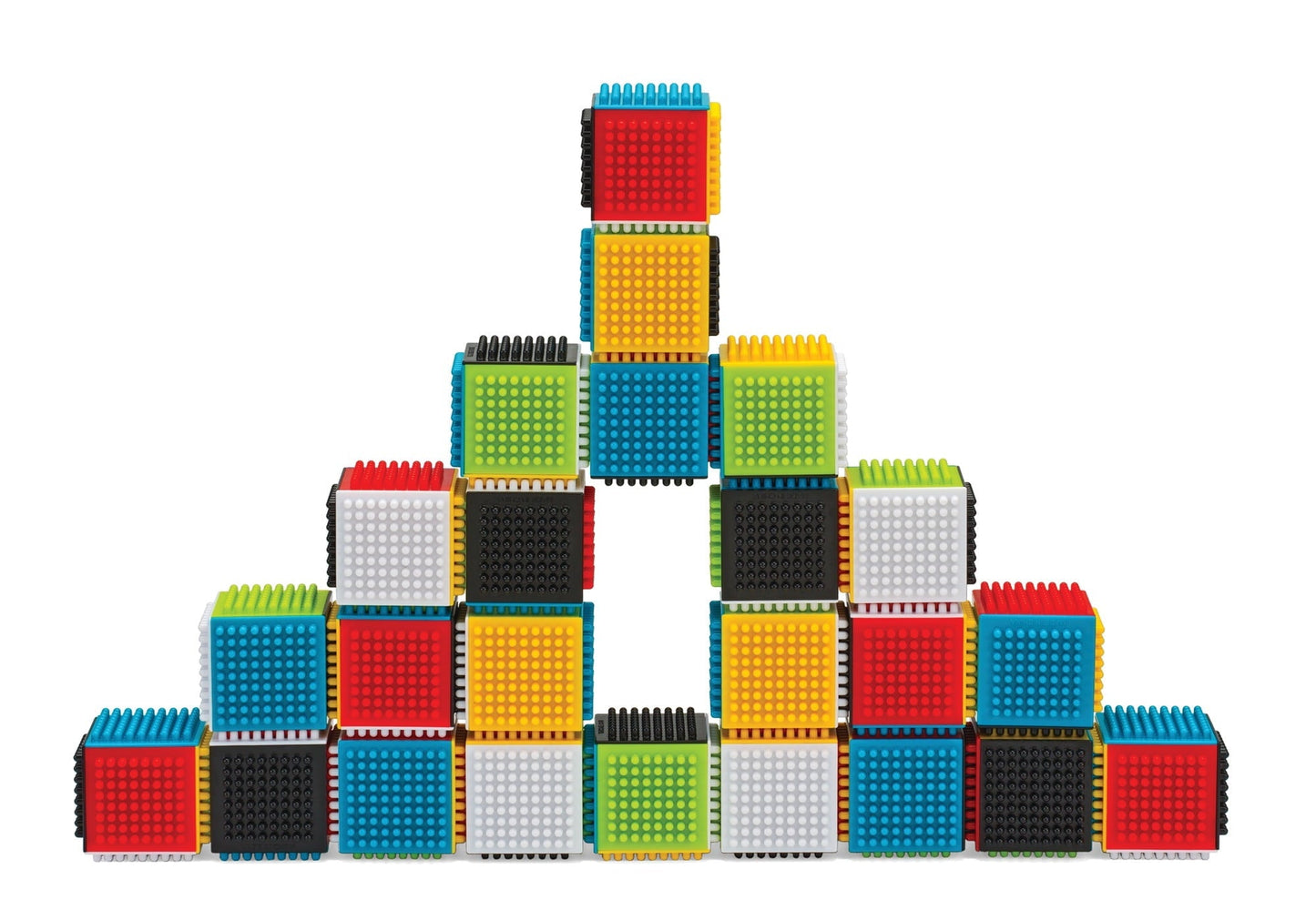Encourage imagination and eliminate frustration with the Infantino Press & Stay Sensory Blocks. This 24-Piece set is easy to use for even the youngest builders, thanks to its unique interlocking design. Simply push the blocks together to attach them at any point and pull apart to detach them. Stack up or build sideways for open-ended baby-friendly play possibilities.